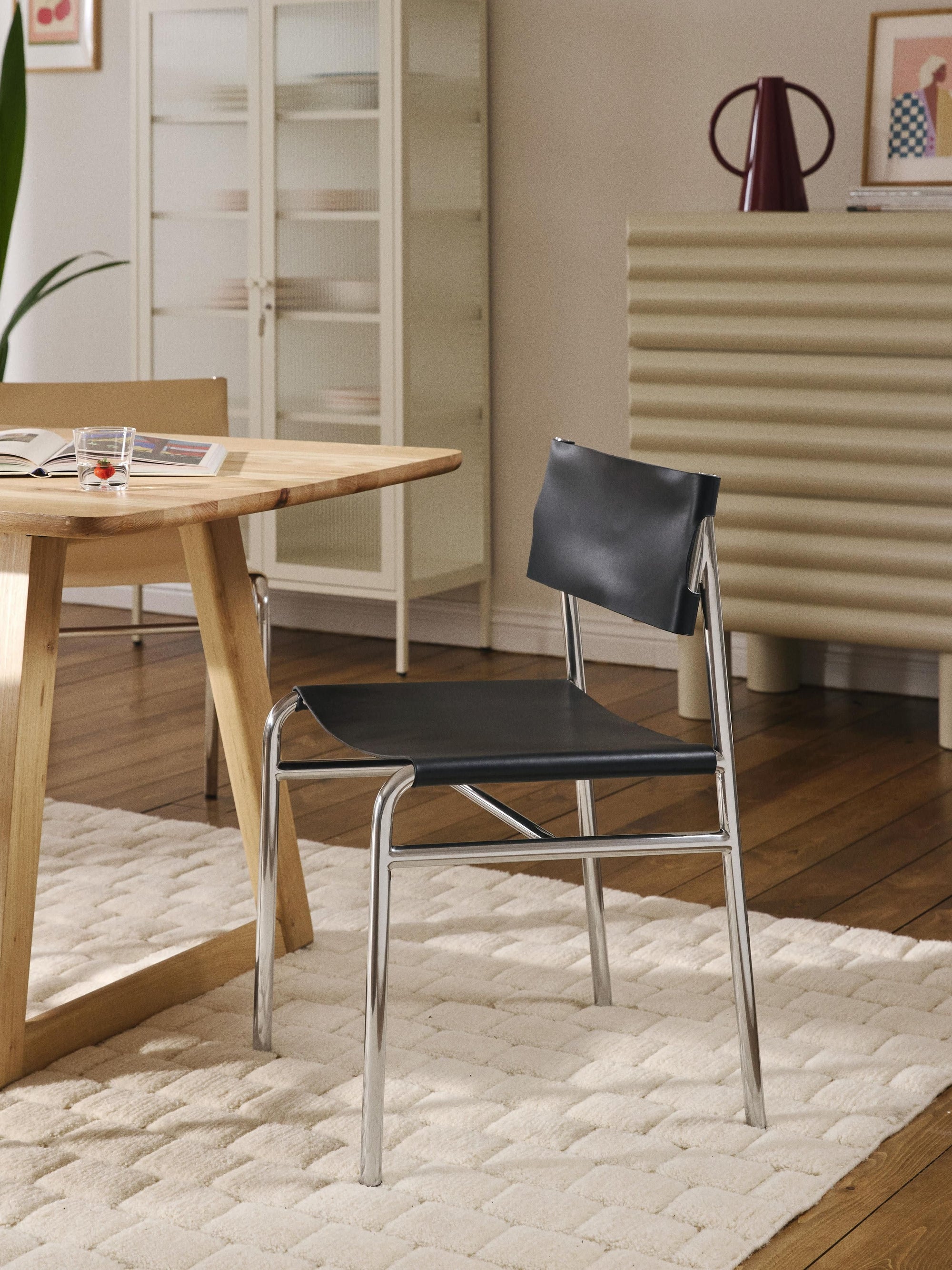 With its chromed frame, soft leather, and sculptural lines, JORDAN turns every room into a modern highlight.