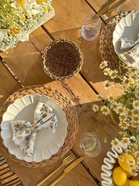 - Tovagliette rotonde in fibre naturali , per una mise en place “green”, come le tovagliette tonde di Bloomingville in rattan .