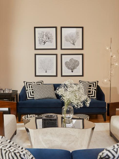 Per bilanciare l’intensità del verde petrolio, punta sulle texture metalliche. Mentre l’oro è sontuoso e ricercato, per un living in puro stile glam, l’argento ha una dimensione più minimal e moderna, soprattutto nella finitura satinata. Valorizza la tua parete con cornici, specchi e decorazioni artistiche realizzate in materiali metallici.
