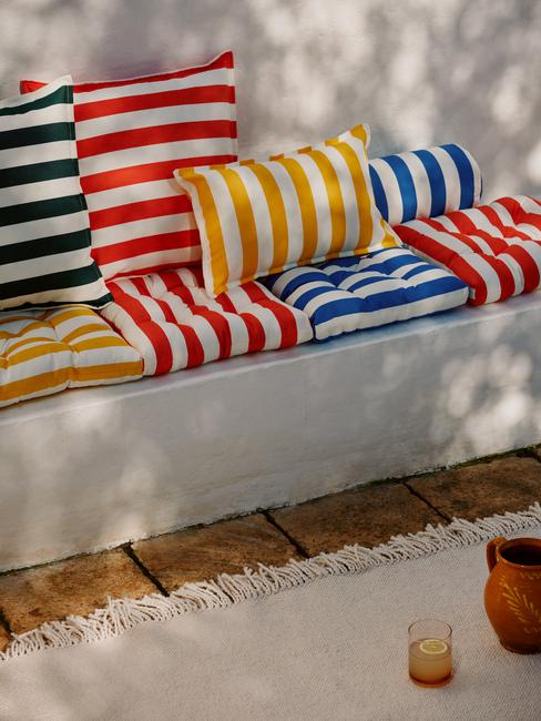 Oltre ai materiali utilizzati per la struttura portante dei mobili, scegli con cura anche i tessuti dei rivestimenti e dei complementi d’arredo. Meglio preferire le opzioni sfoderabili e lavabili, oppure idrorepellenti e antimacchia. Nel caso di un salotto outdoor con imbottitura integrata, valuta la possibilità di acquistare dei teli protettivi con cui coprire divano e poltrone. I cuscini outdoor in fibre sintetiche sono perfetti per essere esposti tutto il giorno, e sono facilmente lavabili in lavatrice a 30°C. Scegli materiali come poliacrilico e poliestere, resistenti ai raggi UV.