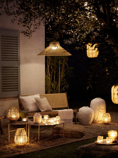 Il tuo terrazzo ha bisogno di un tocco in più? Vediamo delle idee originali da cogliere al volo. Se l’illuminazione non è mai troppa, posiziona delle strisce a led sotto il divanetto: otterrai un’illuminazione gradevole e ricercata. Per un tocco di colore o per una festa all’aperto scegli delle ghirlande con luci colorate. Per un effetto boho chic non solo in casa, ma anche in terrazzo, ti consigliamo lampade in rattan e dei grandi lampadari a sospensione a cesto: avrai un terrazzo da copertina da far invidia alle tue amiche. A completamento della zona relax, opta per dei paralumi o delle lanterne in stile orientale nei toni caldi del beige, crema o marrone. Ora che sai come illuminare il tuo balcone o il tuo terrazzo, è tempo di pensare ad arredamento e decorazioni. Leggi le nostre guide a tema “Terrazzo e balcone” e scopri tanti consigli utili e idee creative! Per altre idee su lampade e luci, guarda invece il nostro articolo su come illuminare casa.