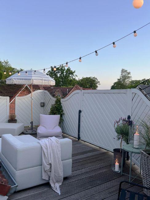 - Misurare attentamente l’area da illuminare . Che dimensioni ha il tuo terrazzo? Capire le dimensioni e le aree da illuminare è fondamentale per poter individuare i punti strategici e collocare le luci giusti senza esagerare.