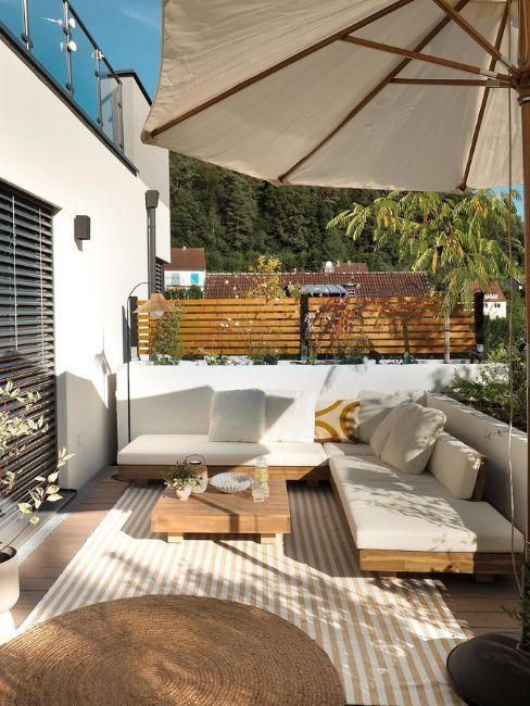 Al contrario di altri stili, un terrazzo in stile moderno predilige materiali e tessuti strutturati, pesanti e importanti.