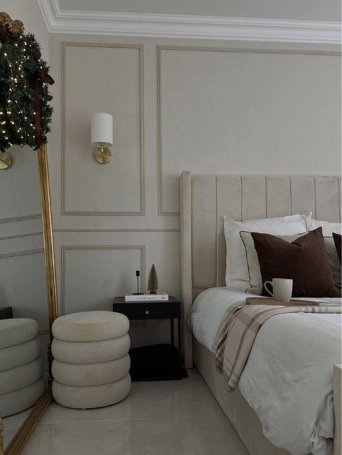 Un altro fattore da considerare è il budget, trattandosi di un rivestimento su misura realizzato con materiali più o meno pregiati. Eppure, la boiserie in camera da letto non deve per forza costare una fortuna: per risparmiare puoi dilettarti col fai da te, optando per una finta boiserie dipinta o tridimensionale. Nel primo caso, basterà applicare una vernice ad acqua e dipingere una fascia orizzontale, così da delimitare due sezioni del muro sovrapposte (volendo puoi completare il progetto con la carta da parati). Per realizzare la cornice marcapiano, o altre modanature in rilievo, puoi ricorrere agli elementi sagomati in polistirolo: oltre a essere low cost, possono essere personalizzati nella forma e nel colore, dipingendoli con una vernice colorata.