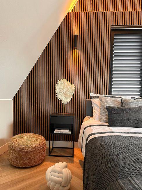 In alternativa alla boiserie classica in legno, considera anche una parete con i listelli in legno cannettato. Possono sempre essere considerati come boiserie, ma molto più moderni. Puoi sceglierli in legno chiaro o scuro in base allo stille della stanza.
