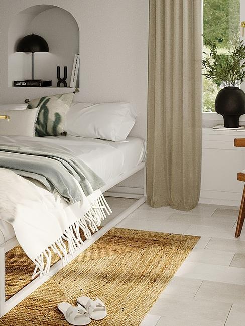 Un’altra alternativa alla lampada da tavolo, che però richiede più spazio al lato del letto, è la lampada da terra. Utile anche se accanto al letto vuoi posizionare una poltroncina per creare un angolo lettura.