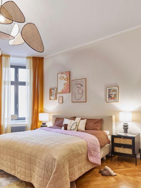 Davvero di grande impatto questa soluzione che sostituisce alle lampade da terra dei piccoli lampadari collegati direttamente al soffitto. Se ti piace questo effetto in stile coloniale, scegli paralumi in bambù a contrasto con una parete colorata, ma puoi anche optare anche per lampadari moderni per una camera minimal o per paralumi in tessuto per una camera romantica.