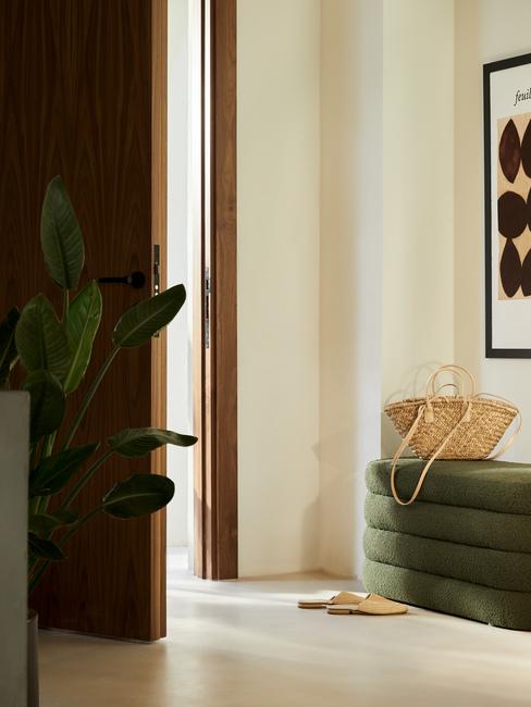Per il disimpegno all’ingresso di una casa moderna vediamo bene un setting essenziale, ma di carattere. Fatti conquistare da un’elegante panca contenitore e riprendi la stessa nuance tramite una raffinata stampa o altre decorazioni chic.