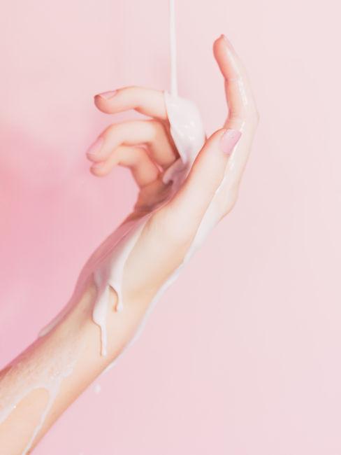 Bagno effetto marmo bianco con parete rosa e vasca da bagno