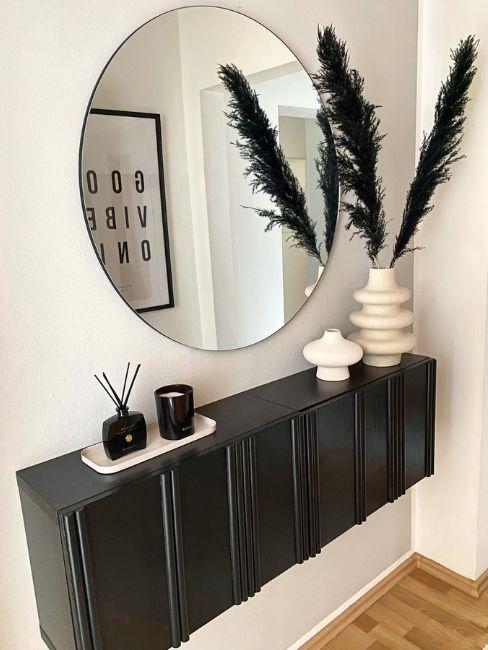 Specchio tondo stile inglese e soprammobili