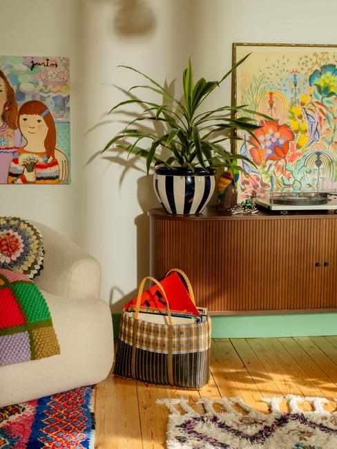 Lampada in plexiglas sul tavolino da salotto con decorazione