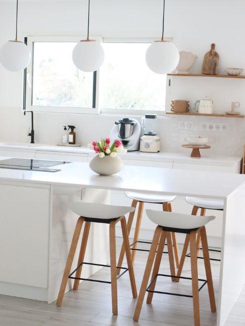 Sedia a dondolo in pelliccia Teddy bianca con base dorata, abbinata a coperte, cuscini e tavolini rosa.