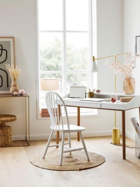 Salotto con divano grigio e accessori bianchi in stile scandinavo