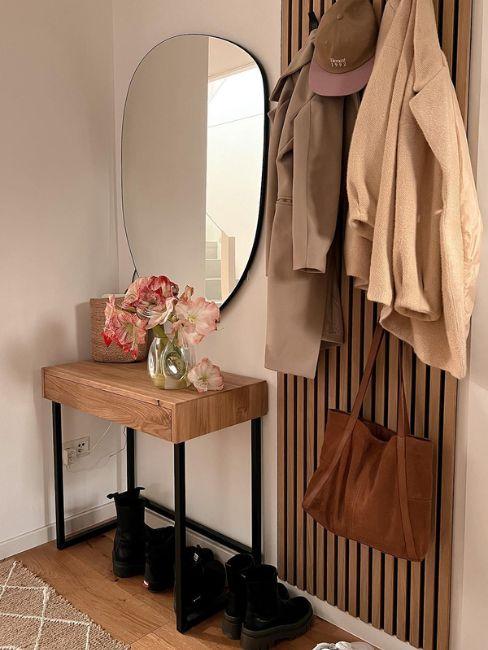 Corridoi e ingressi acquistano subito personalità con pannelli cannettati e listelli di legno applicate alla parete, anche a tutta altezza.